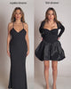 • Fit-and-flare silhouette with shiny black taffeta bubble skirt and pockets.