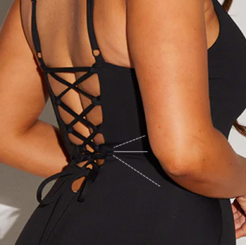 - Signature waist-snatching lacing with open back.